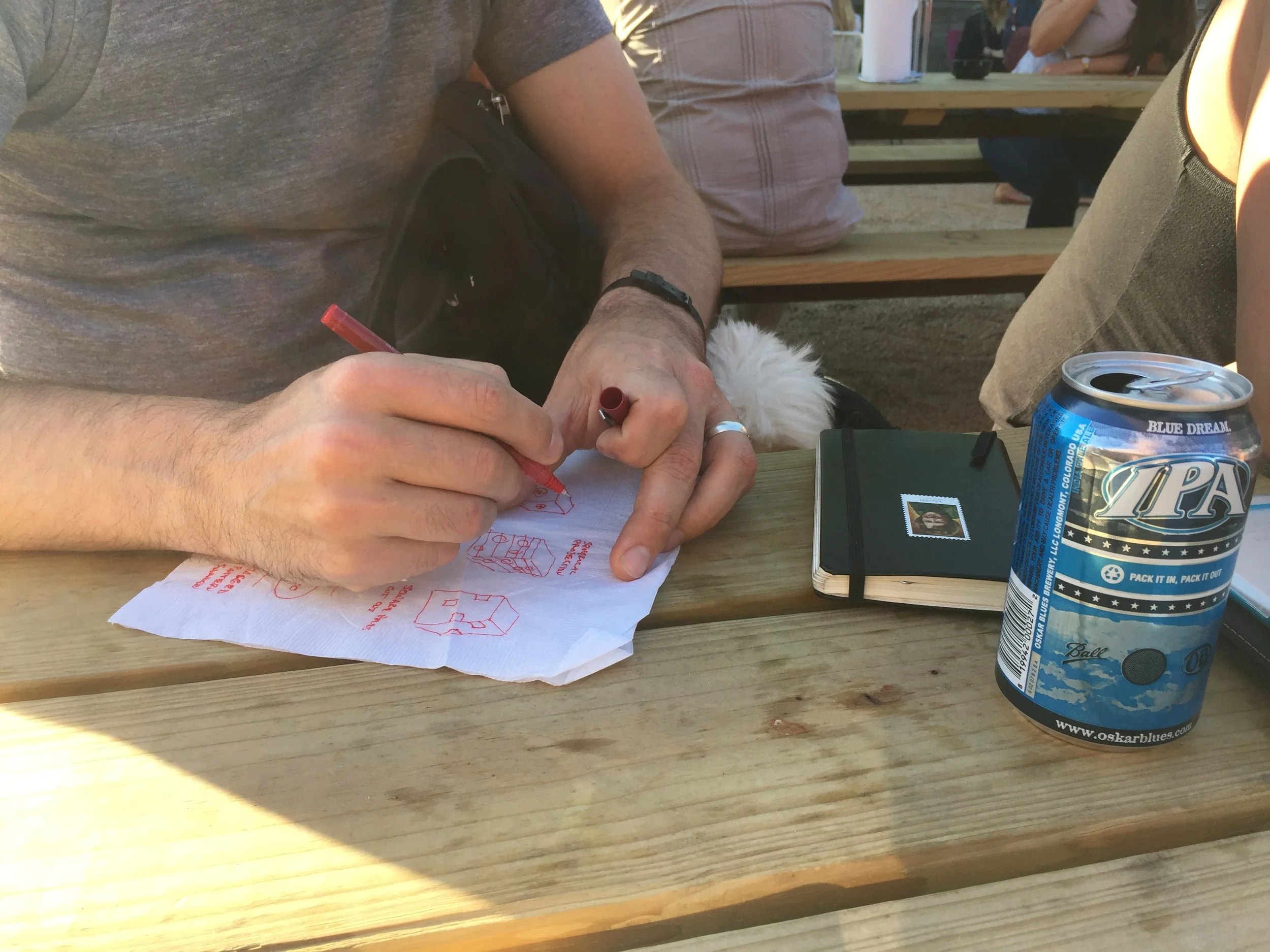 More blog posts, more Instagram photos, and most importantly, more products. It's been too long. We miss you guys. We've been doing a lot of work behind the scenes to make big and exciting changes, and we've kept you all out of the loop. We'll do better. Until next time, here's a classic napkin shot from our latest brainstorming session at Houston's cool new beer garden, Axelrad.